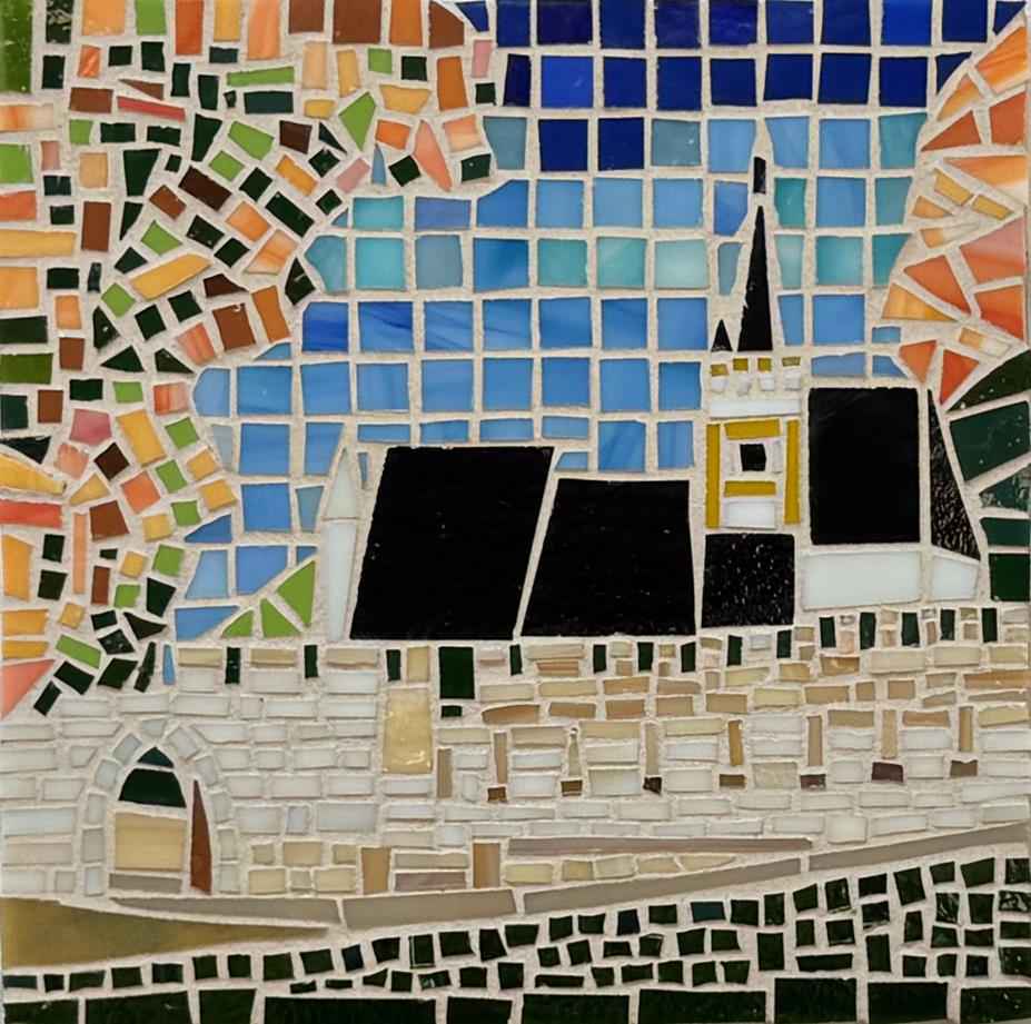 Glasmosaik auf Sperrholzplatte
